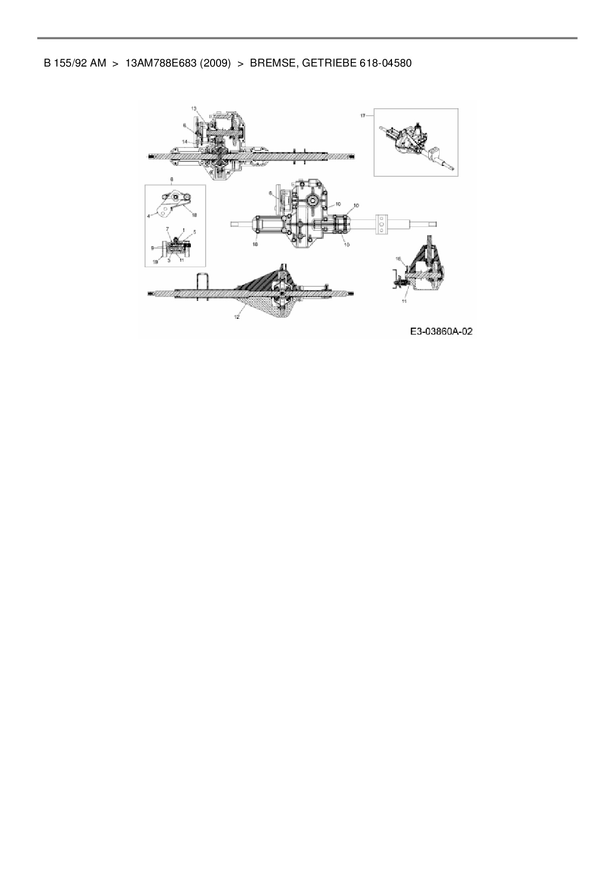Ersatzteile für Rasentraktor Black-Line B 155/92 AM aus der Zeichnung Bremse, Getriebe 618-04580: