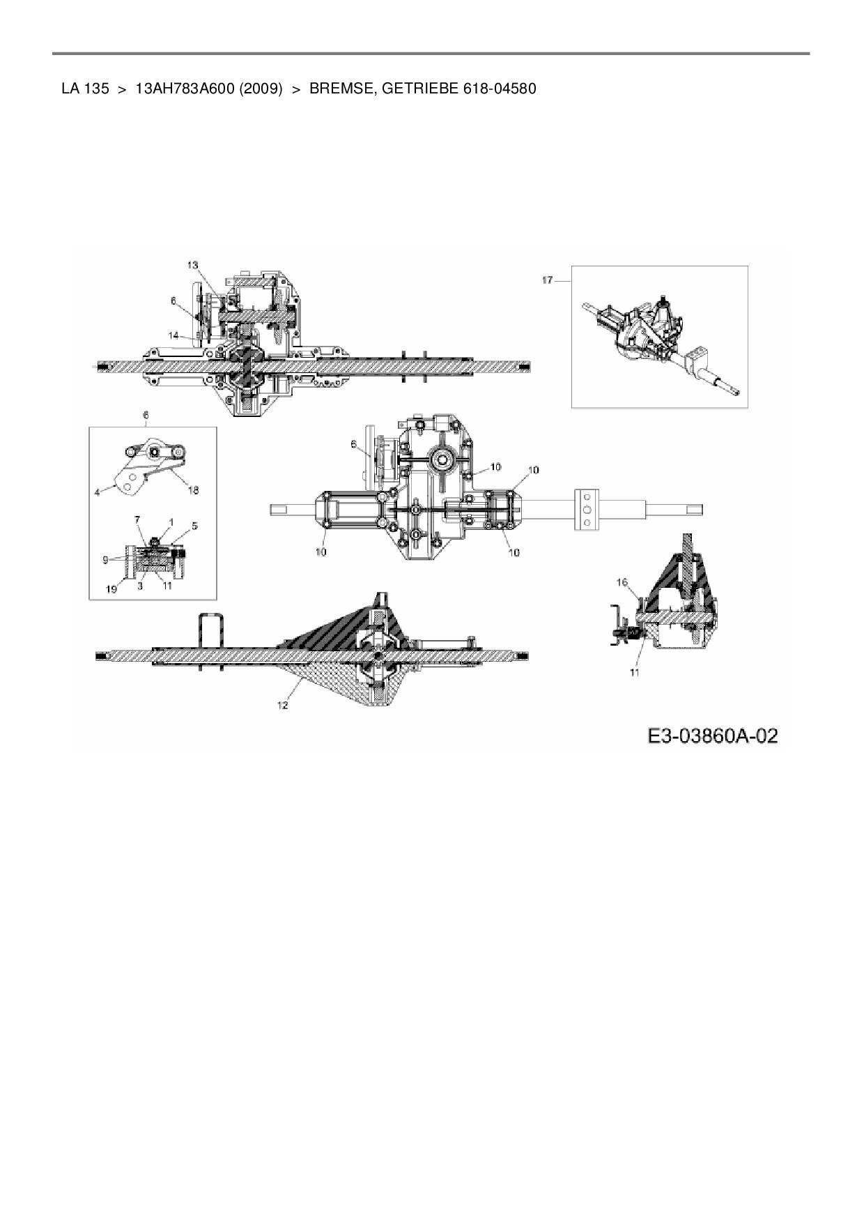 Ersatzteile für Rasentraktor MTD LA 135 aus der Zeichnung Bremse, Getriebe 618-04580: