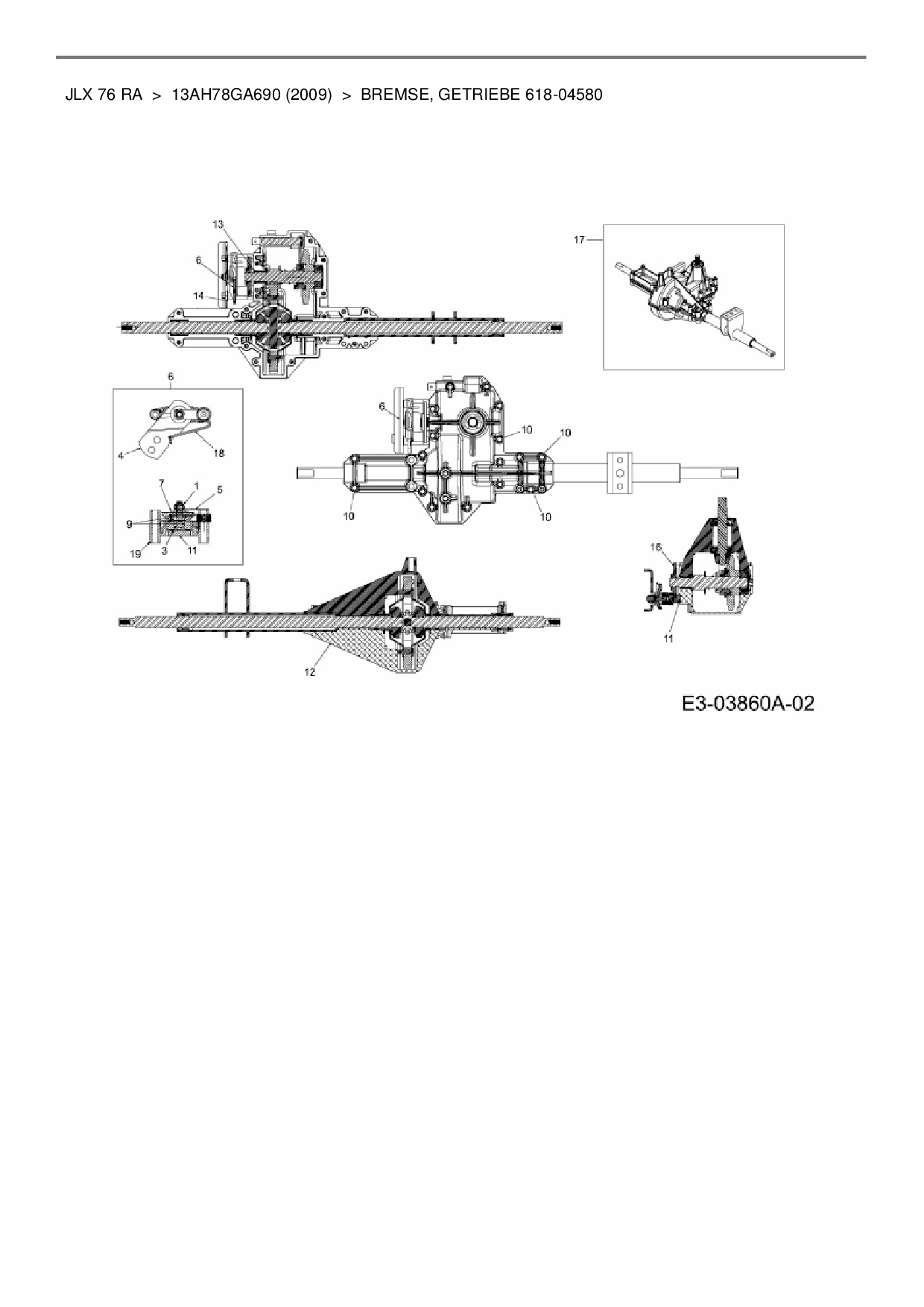 Ersatzteile für Rasentraktor Gutbrod JLX 76 RA aus der Zeichnung Bremse, Getriebe 618-04580: