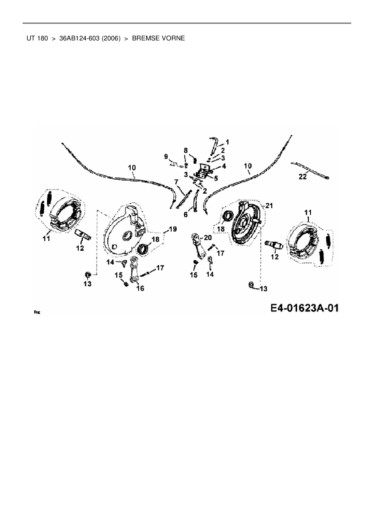 Ersatzteile für Quad Cub Cadet UT 180 aus der Zeichnung Bremse vorne: