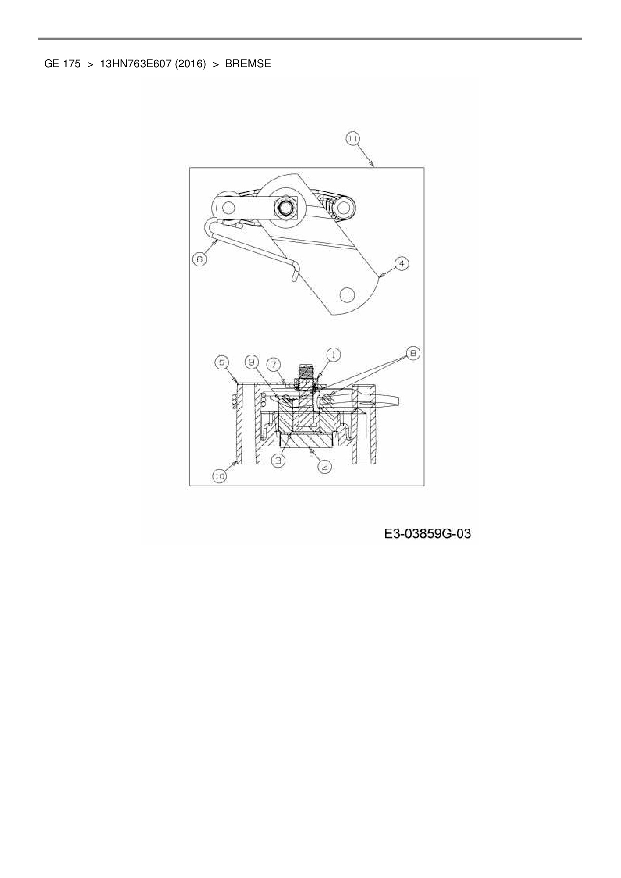 Zeichnung für Blisar Rasentraktor GE 175 mit der Geräte-Artikelnr. 13HN763E607 ab Baujahr 2016: