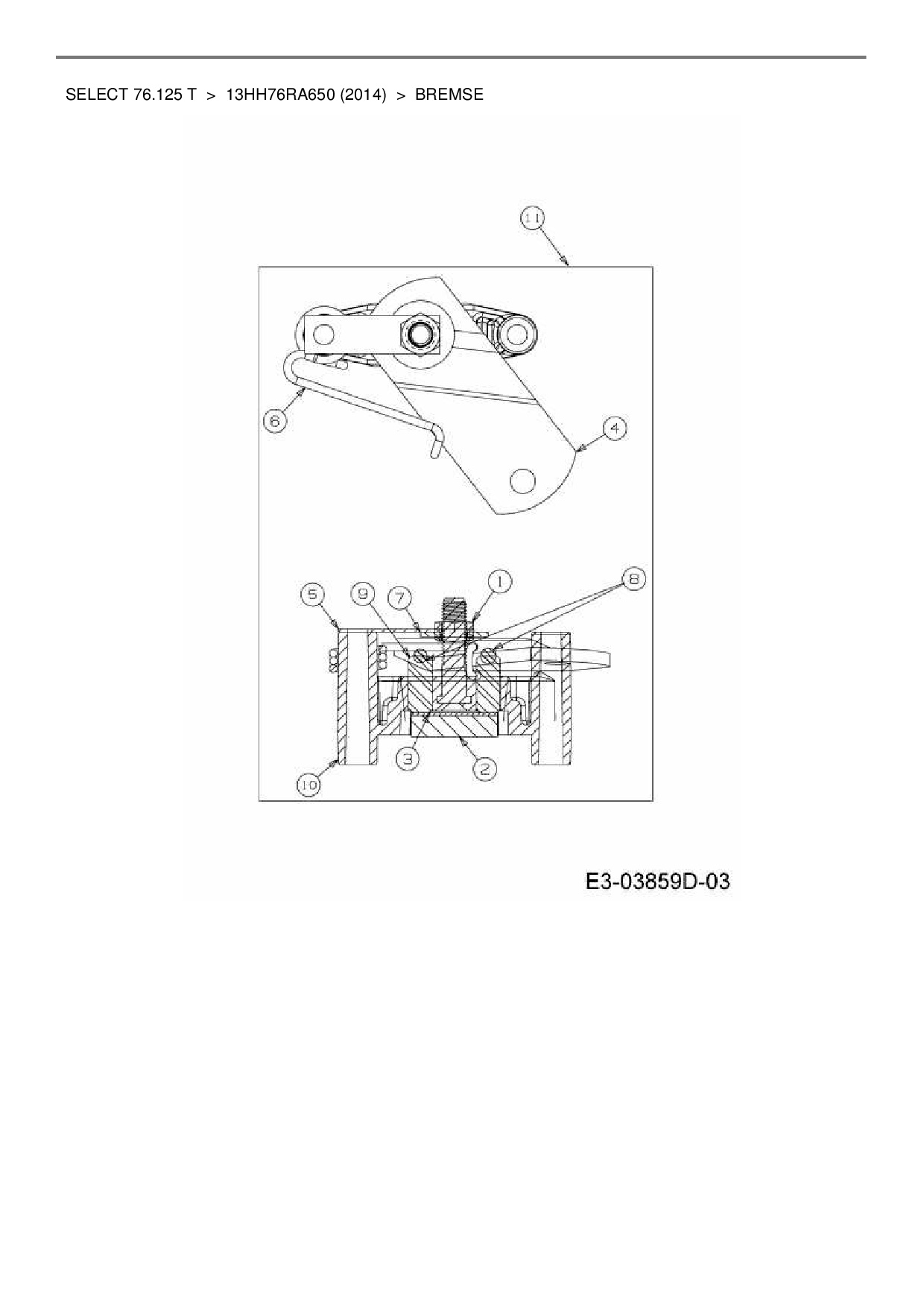 Ersatzteile für Rasentraktor Wolf-Garten Select 76.125 T aus der Zeichnung Bremse: