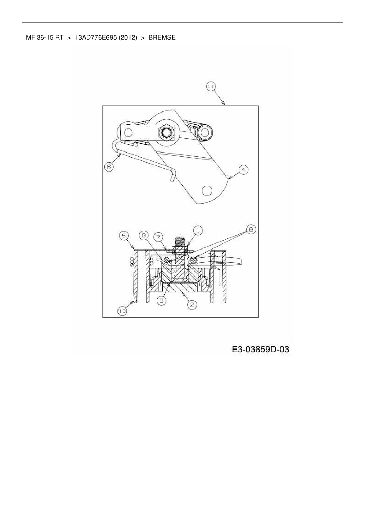 Ersatzteile für Rasentraktor Massey Ferguson MF 36-15 RT aus der Zeichnung Bremse: