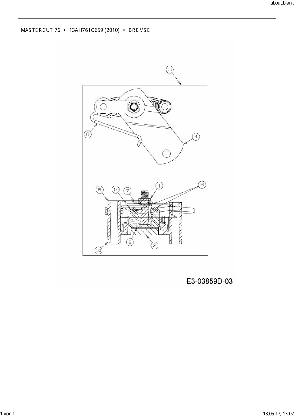 Ersatzteile für Rasentraktor Mastercut Mastercut 76 aus der Zeichnung Bremse: