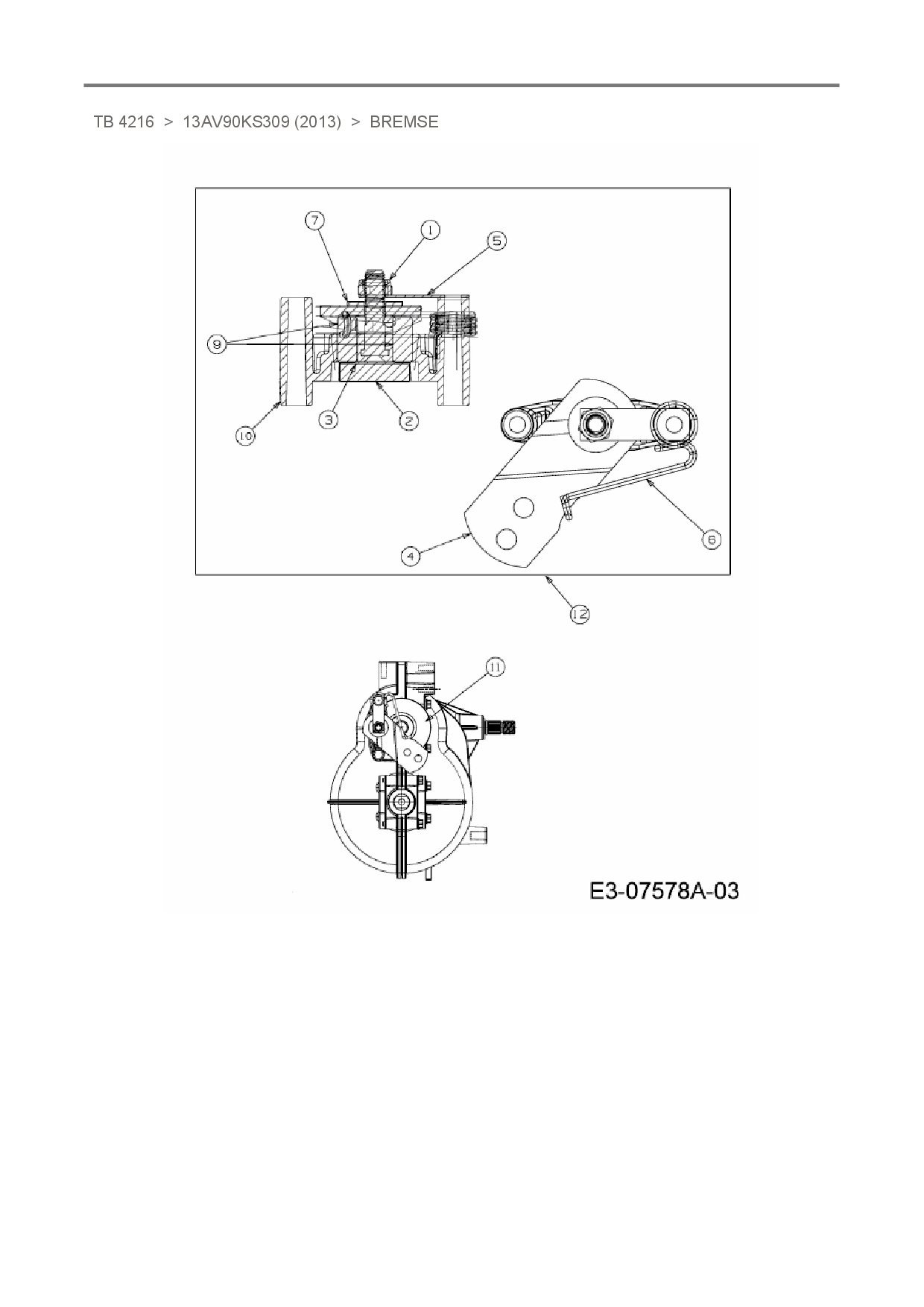Ersatzteile für Rasentraktor Troy-Bilt TB 4216 aus der Zeichnung Bremse: