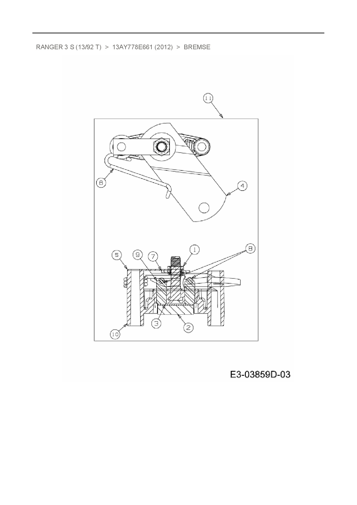 Ersatzteile für Rasentraktor Ranger Ranger 3 S (13/92 T) aus der Zeichnung Bremse: