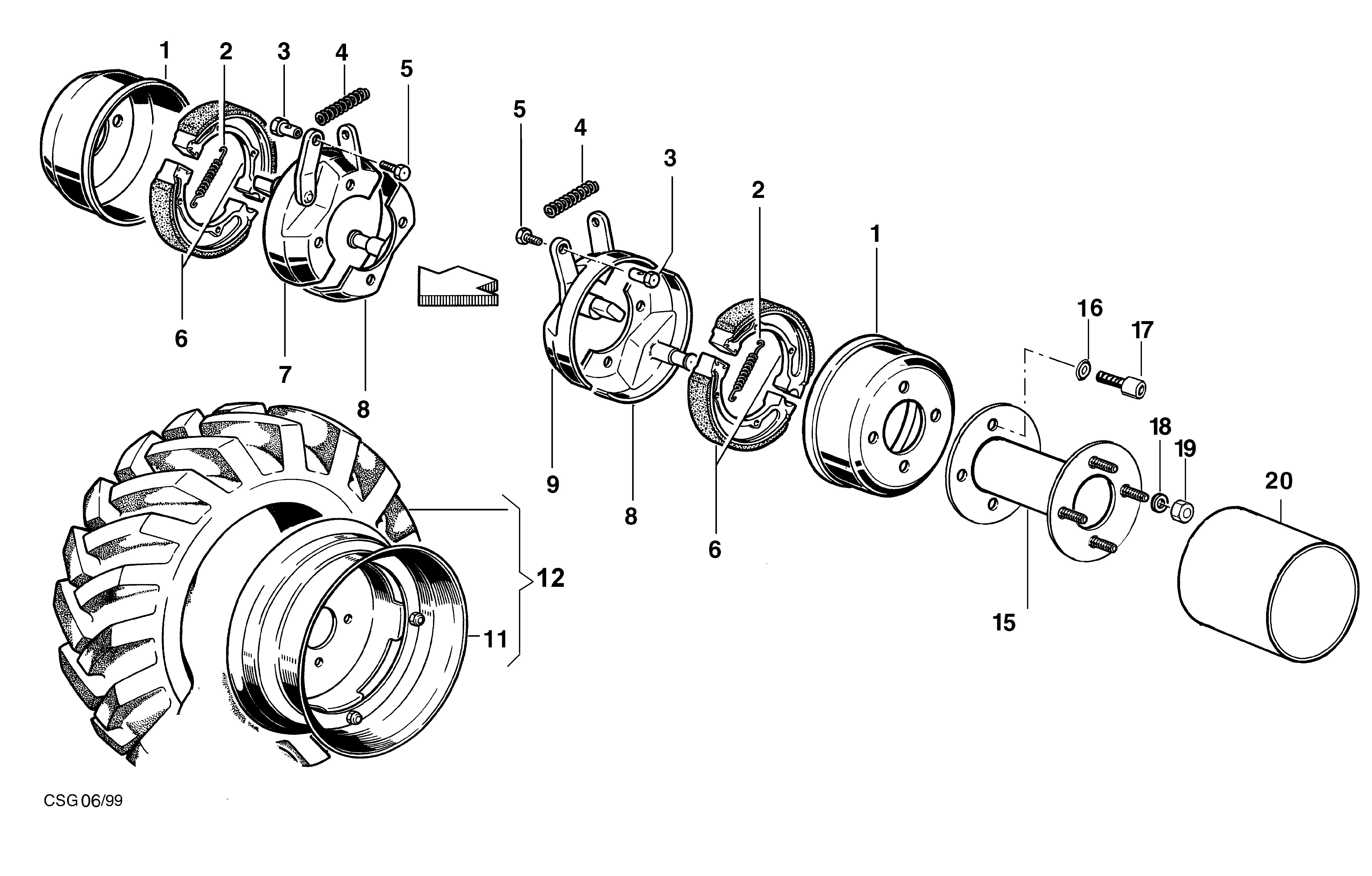 Hier finden Sie alle Ersatzteile für Bertolini Balkenmäher B 103 aus der Zeichnung für Bremsen und Räder: