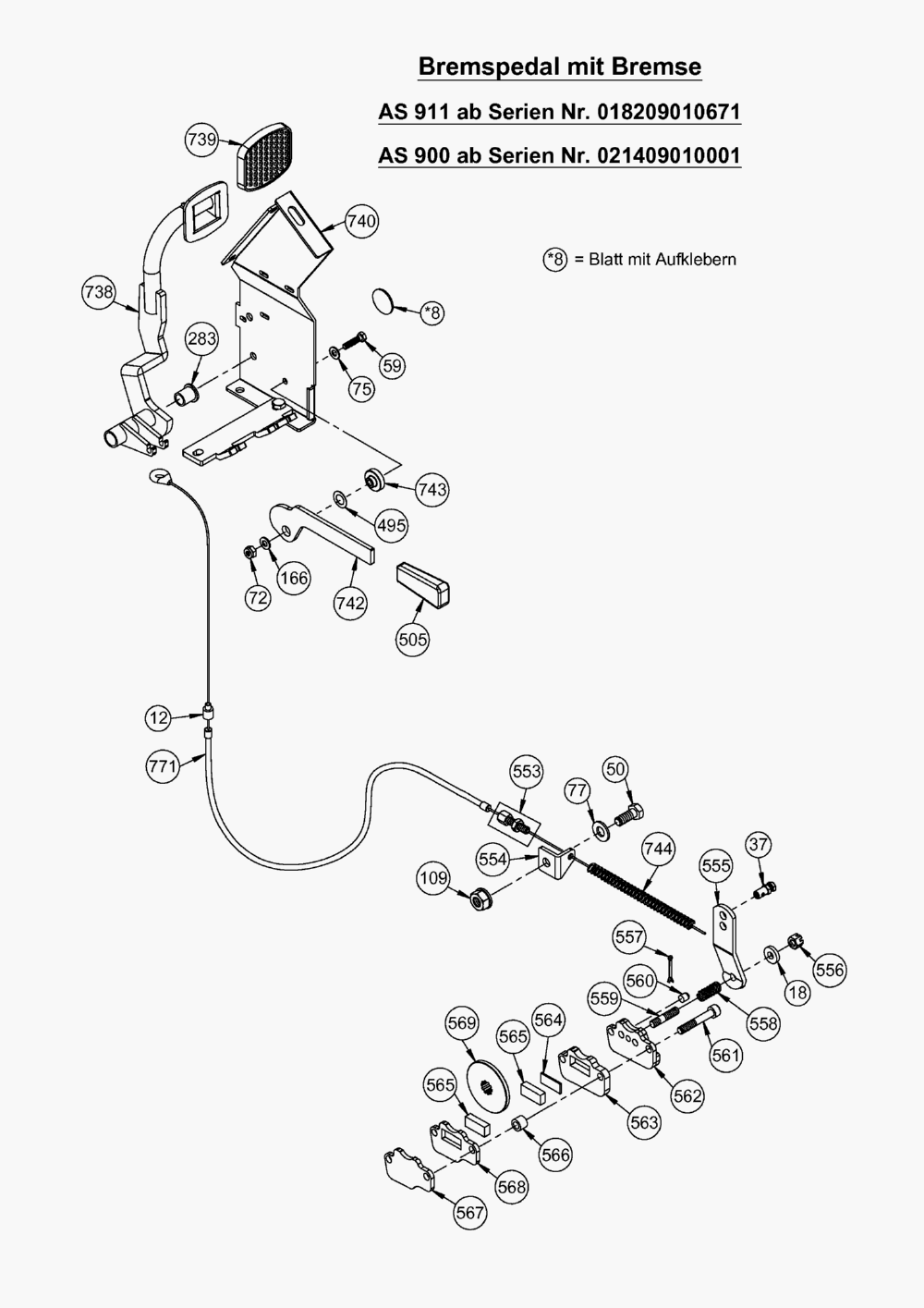 Hier finden Sie alle Ersatzteile von AS-Motor Aufsitzmäher AS 911, AS 915 Enduro ab FNr. 018216010001 aus dem Zeichnungsblatt Bremspedal mit Bremse: