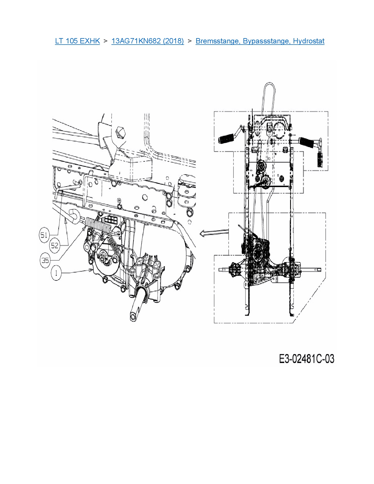 Ersatzteile für Rasentraktor MTD LT 105 EXHK aus der Zeichnung Bremsstange, Bypassstange, Hydrostat: