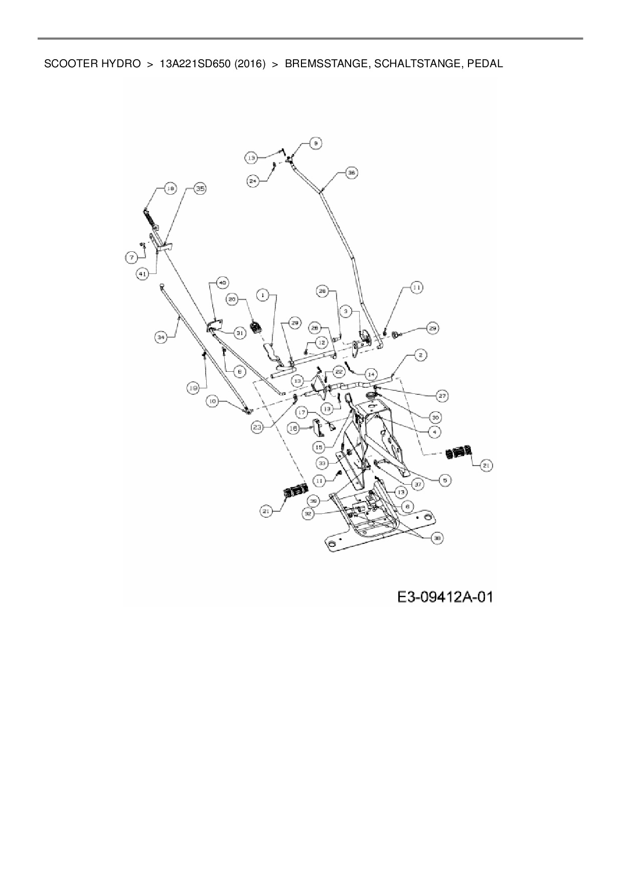 Ersatzteile für Rasentraktor Wolf-Garten Scooter Hydro aus der Zeichnung Bremsstange, Schaltstange, Pedal: