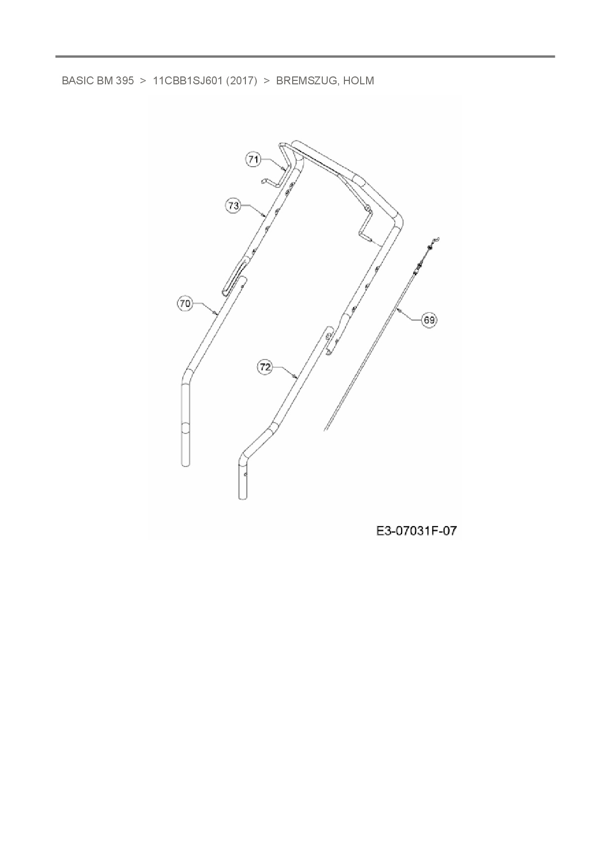 Ersatzteile für Motormäher Basic Basic BM 395 aus der Zeichnung Bremszug, Holm: