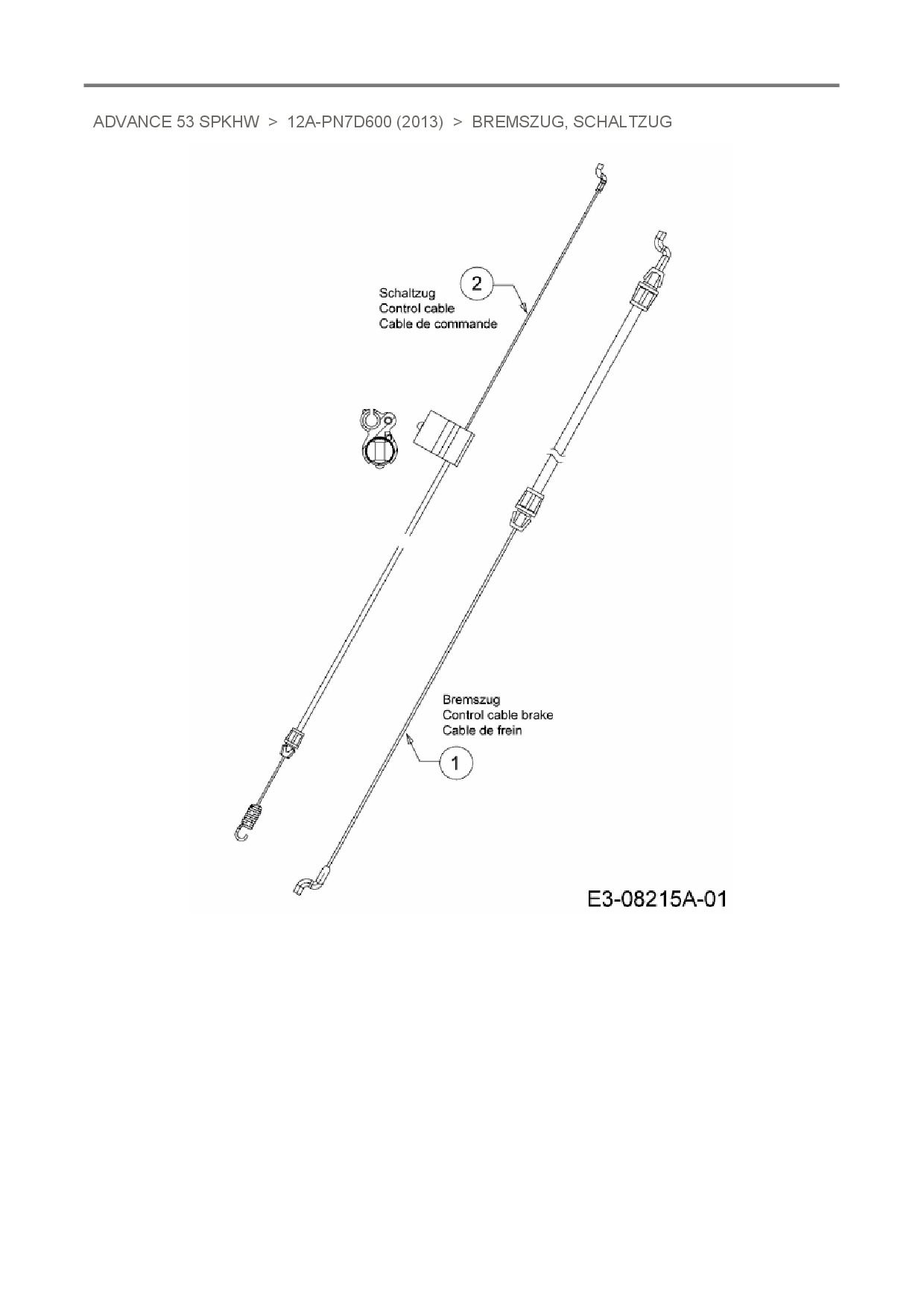 Ersatzteile für Motormäher mit Antrieb MTD Advance 53 SPKHW aus der Zeichnung Bremszug, Schaltzug:
