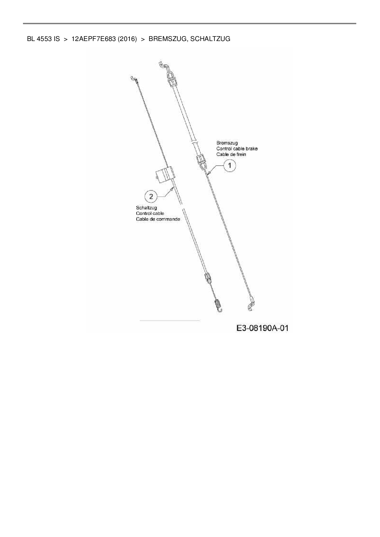 Ersatzteile für Motormäher mit Antrieb Black-Line BL 4553 IS aus der Zeichnung Bremszug, Schaltzug:
