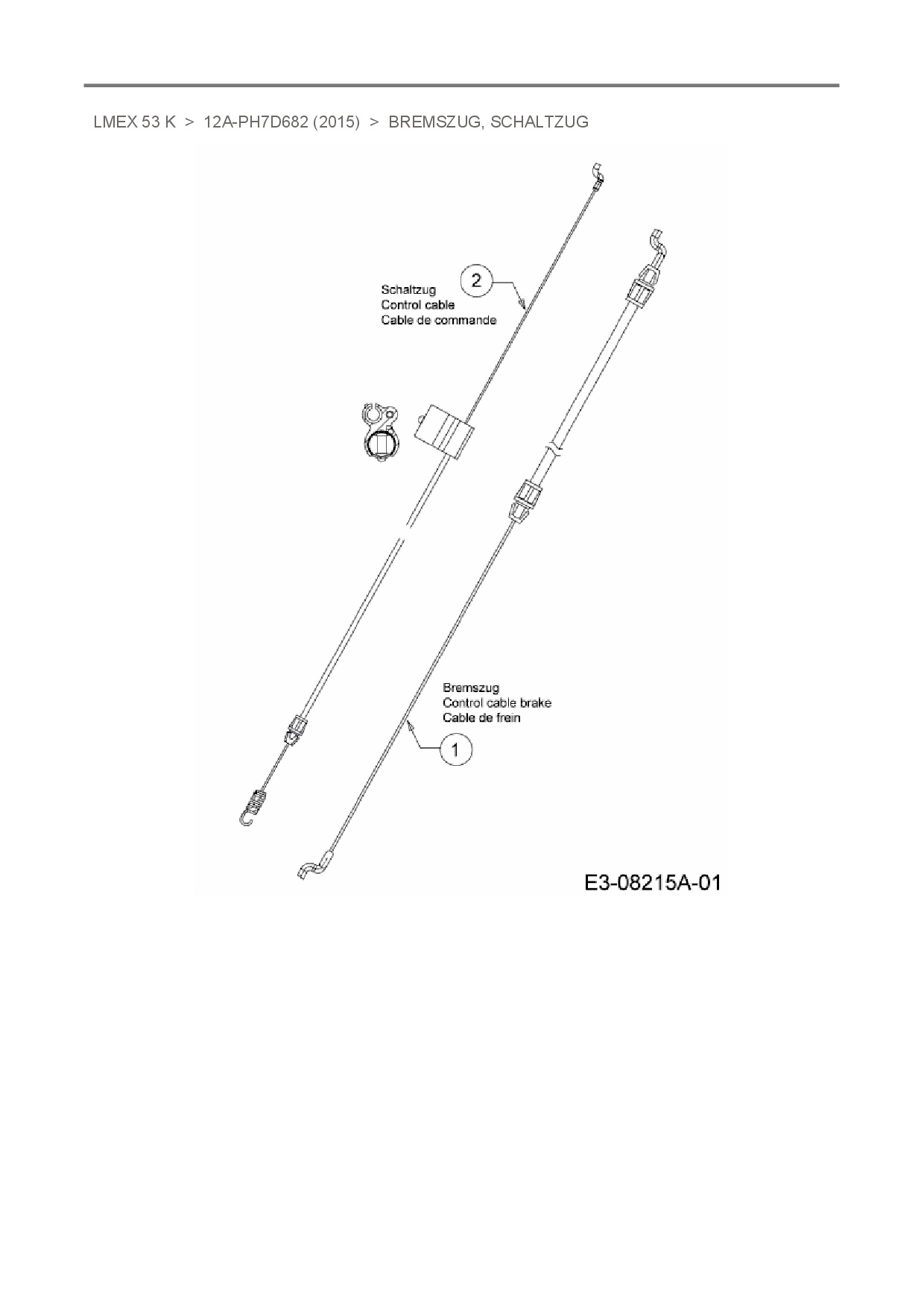Ersatzteile für Motormäher mit Antrieb MTD LMEX 53 K aus der Zeichnung Bremszug, Schaltzug: