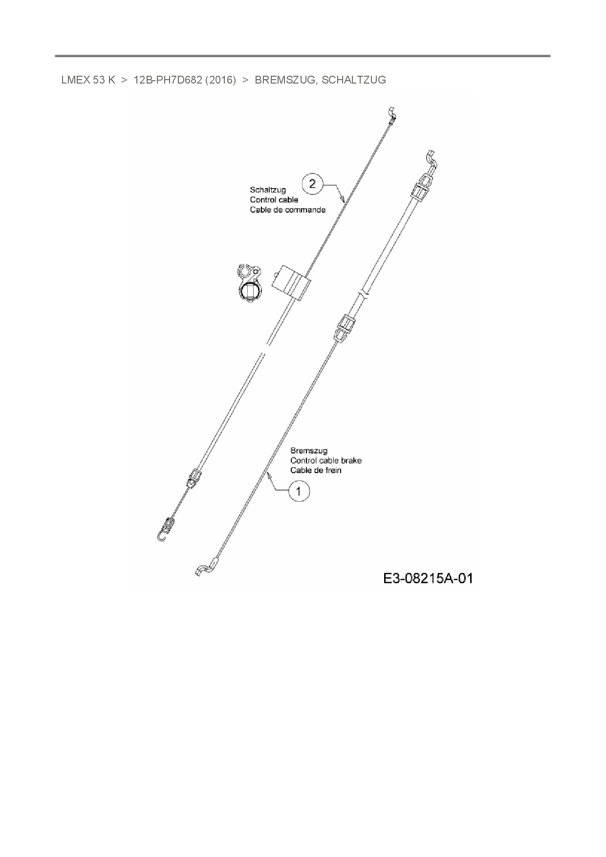 Ersatzteile für Motormäher mit Antrieb MTD LMEX 53 K aus der Zeichnung Bremszug, Schaltzug: