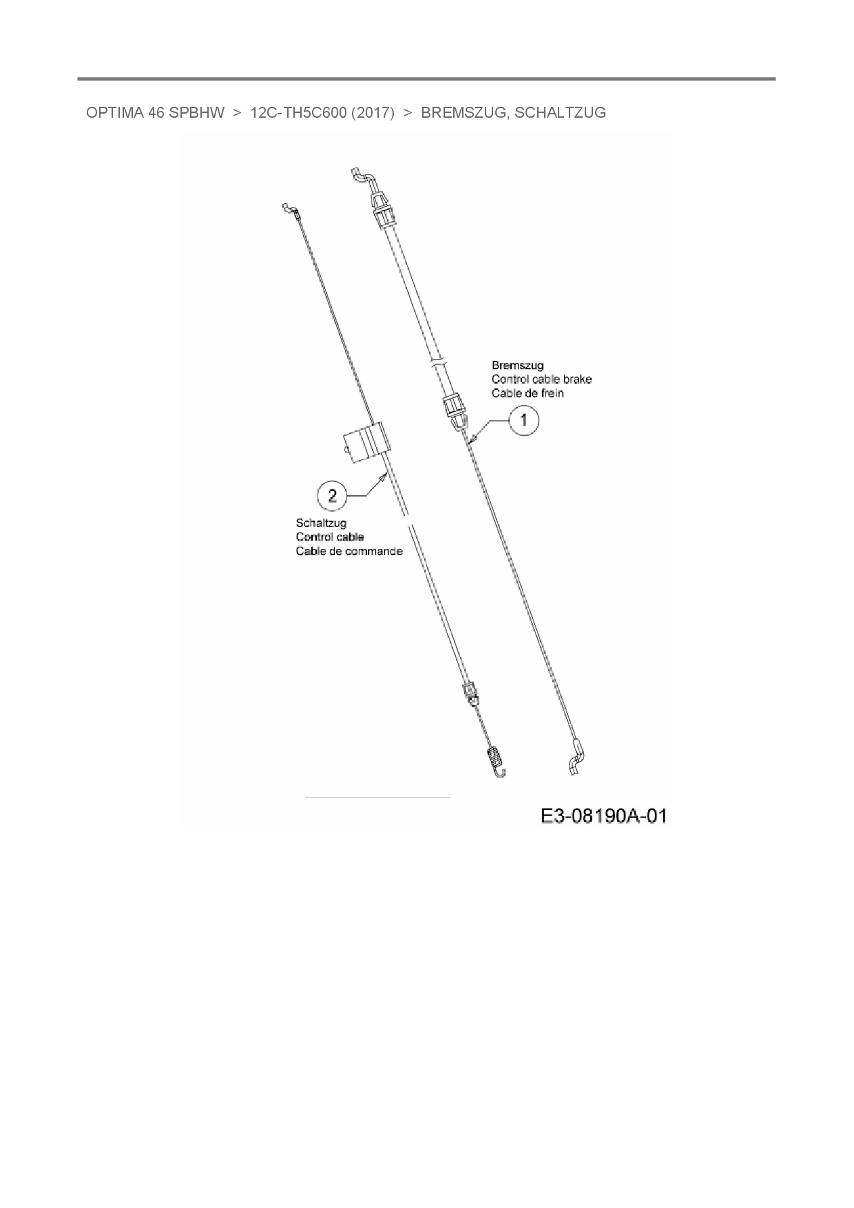 Download Ersatzteil-Zeichnung MTD Optima 46 SPBHW Zeichnung Bremszug, Schaltzug (PDF-Format)