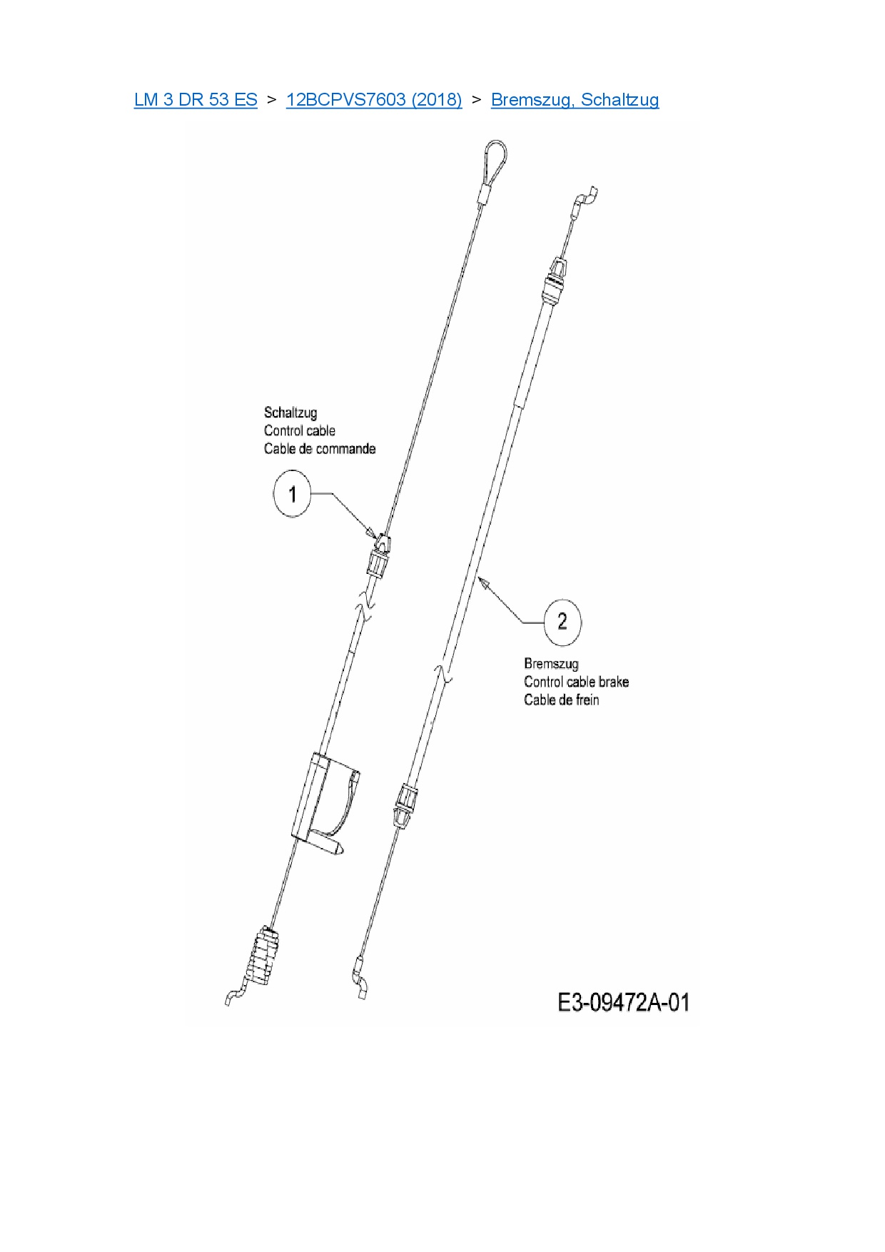 Ersatzteile für Motormäher mit Antrieb Cub Cadet LM 3 DR 53 ES aus der Zeichnung Bremszug, Schaltzug: