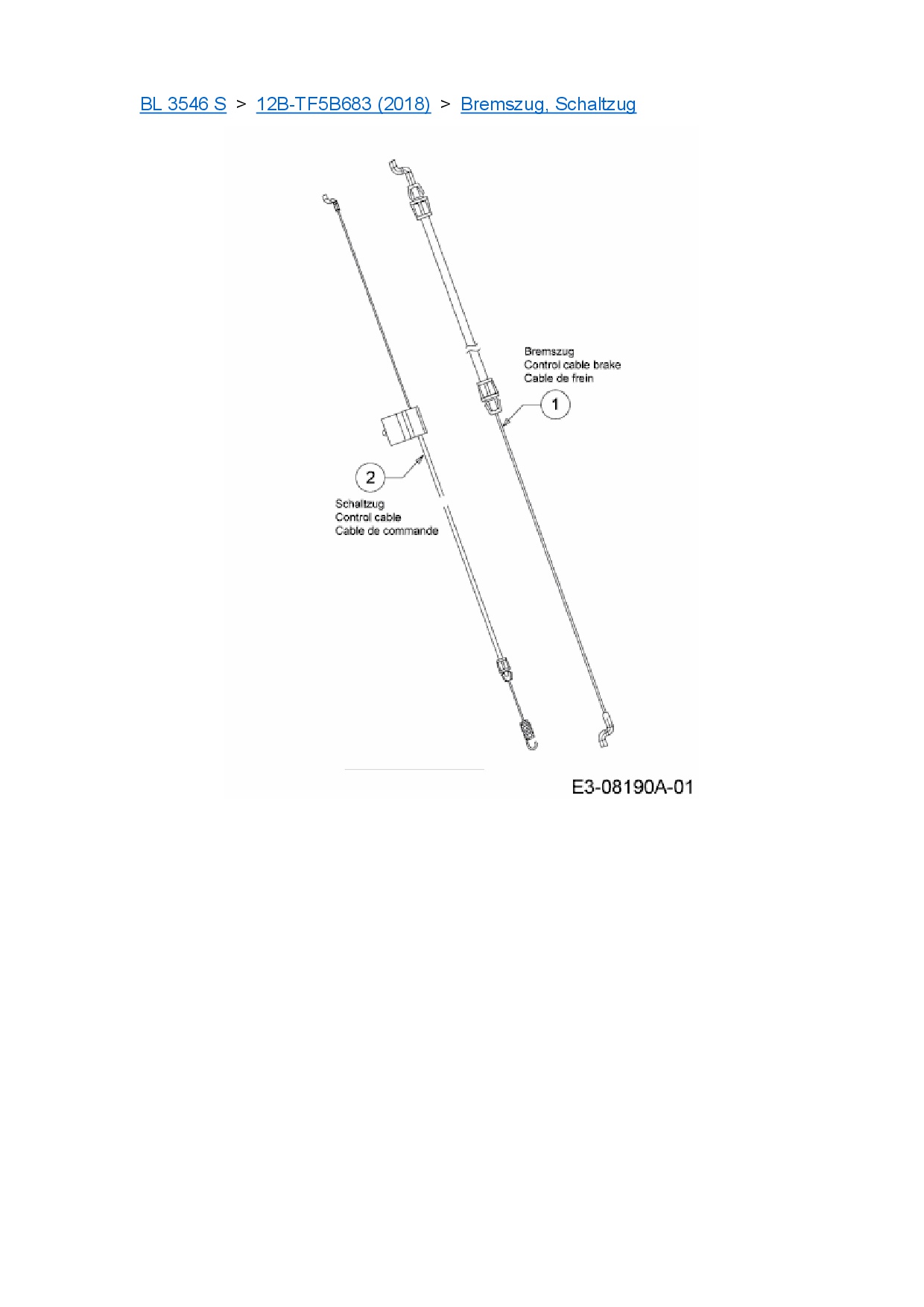 Ersatzteile für Motormäher mit Antrieb Black-Line BL 3546 S aus der Zeichnung Bremszug, Schaltzug: