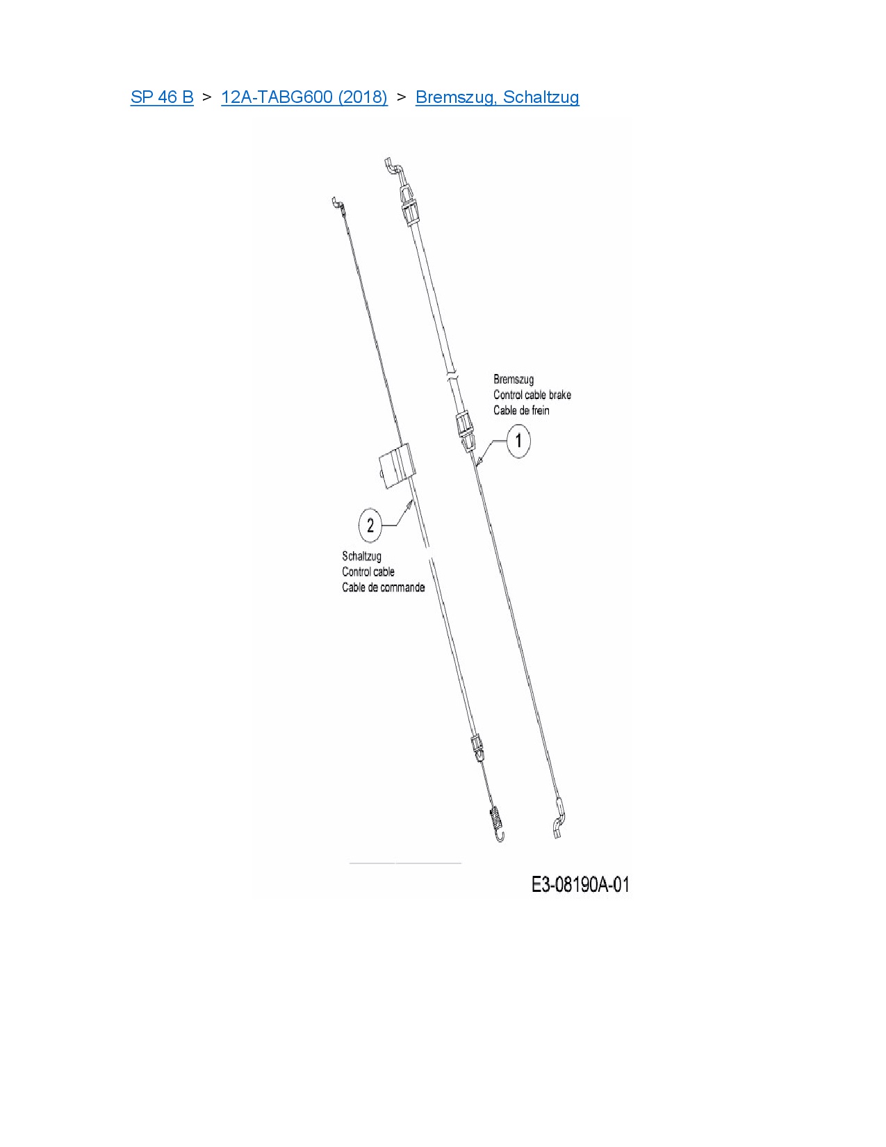 Ersatzteile für Motormäher mit Antrieb MTD SP 46 B aus der Zeichnung Bremszug, Schaltzug: