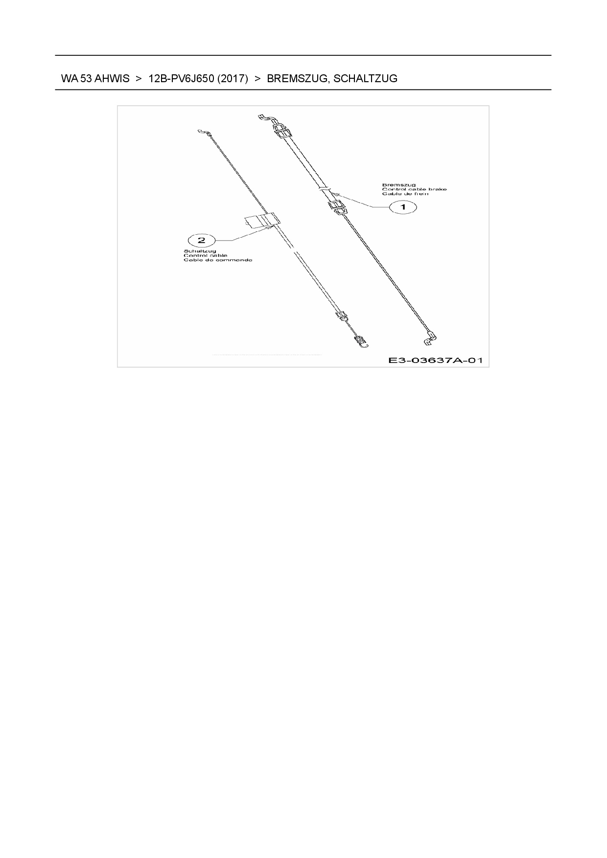 Ersatzteile für Motormäher mit Antrieb Wolf-Garten WA 53 AHWIS aus der Zeichnung Bremszug, Schaltzug: