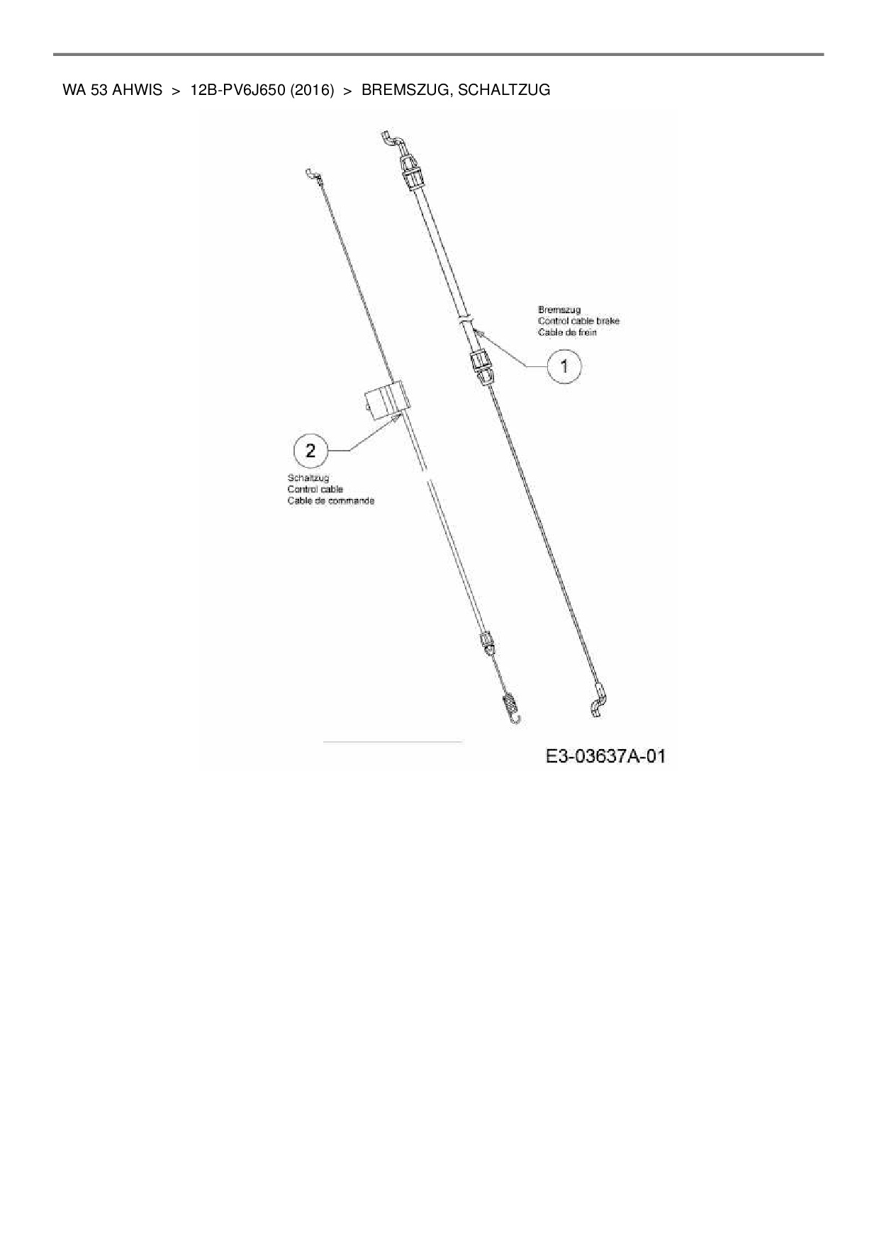Ersatzteile für Motormäher mit Antrieb Wolf-Garten WA 53 AHWIS aus der Zeichnung Bremszug, Schaltzug: