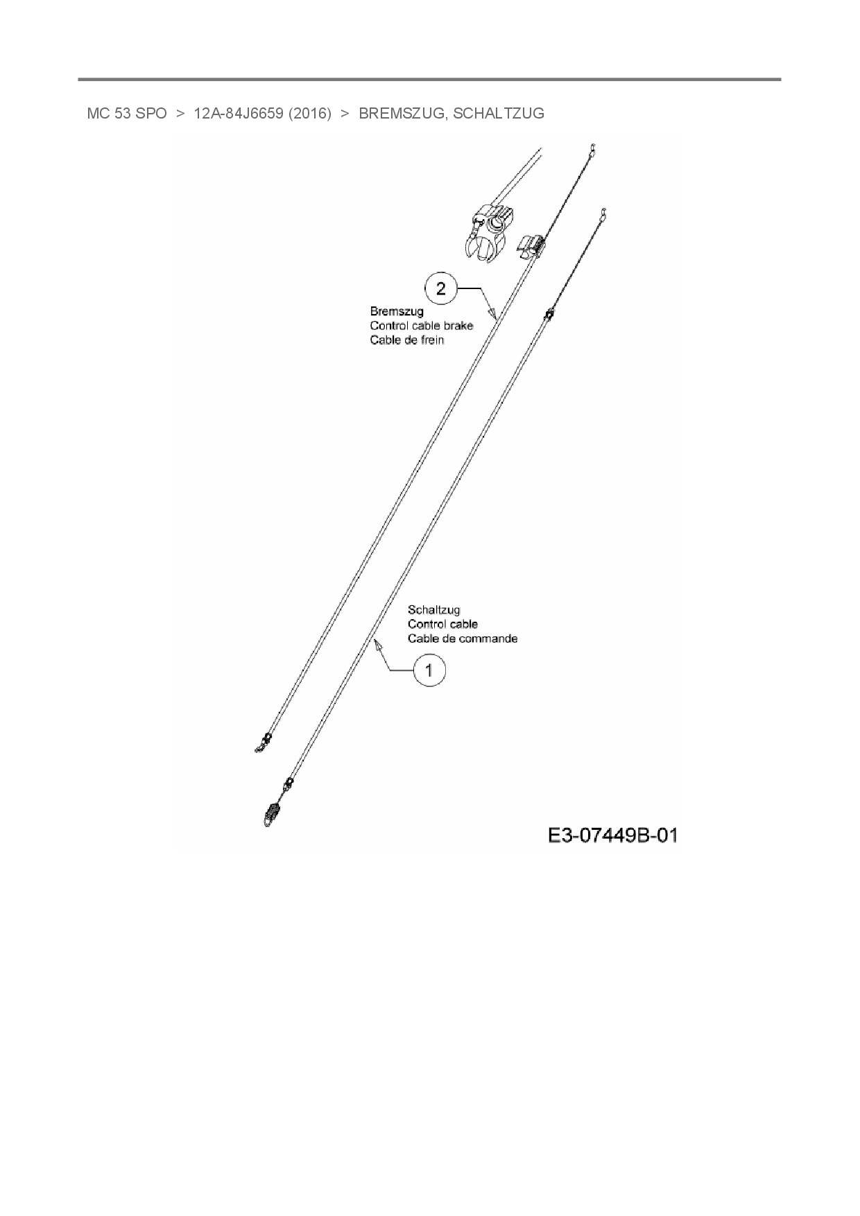 Ersatzteile für Motormäher mit Antrieb Mastercut MC 53 SPO aus der Zeichnung Bremszug, Schaltzug: