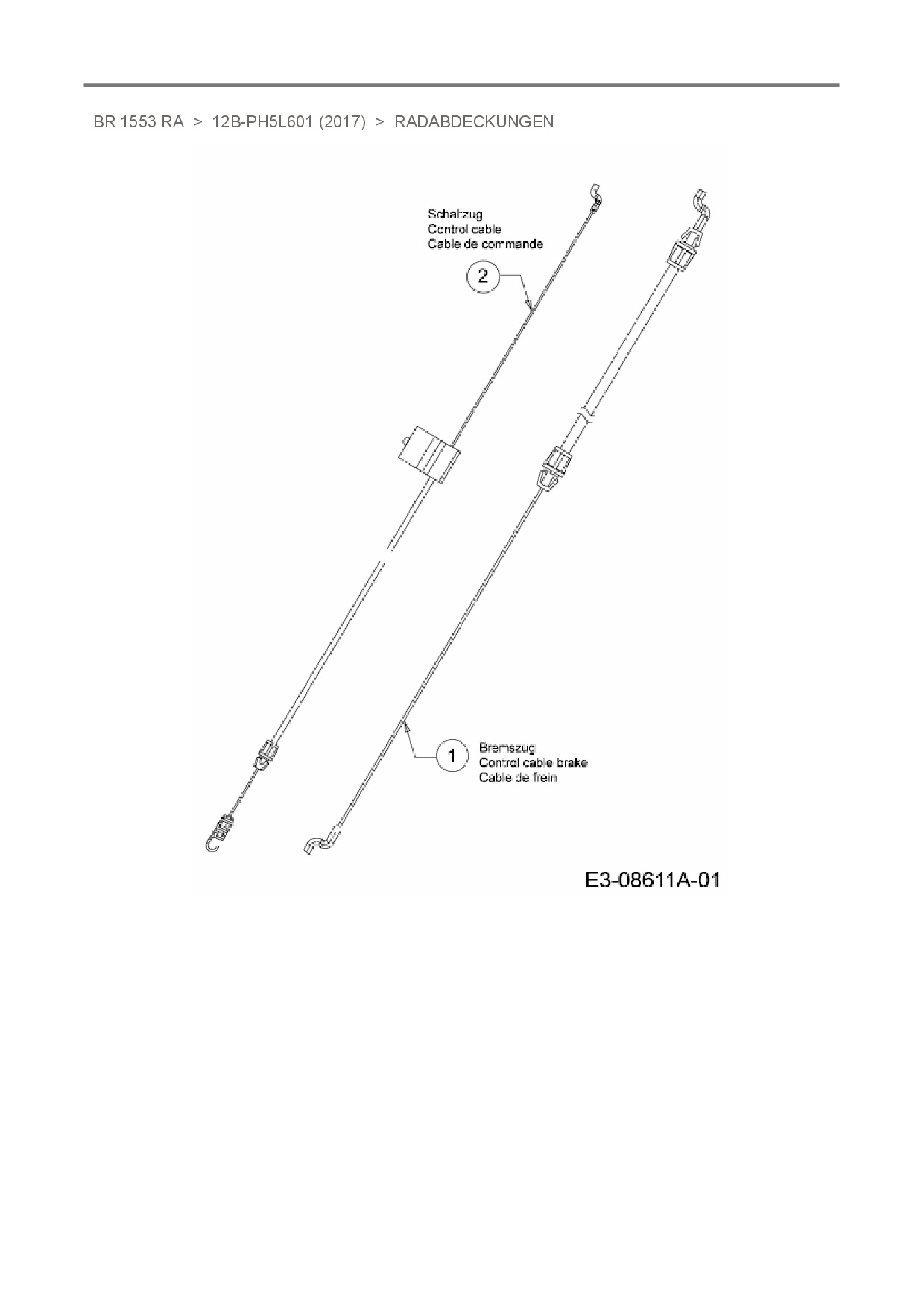 Ersatzteile für Motormäher mit Antrieb Wingart BR 1553 RA aus der Zeichnung Bremszug, Schaltzug: