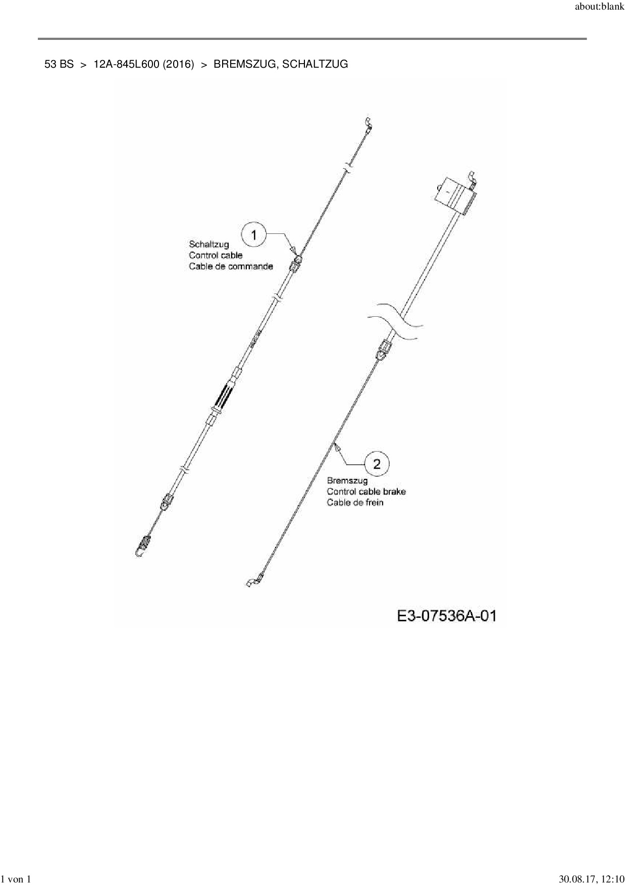 Ersatzteile für Motormäher mit Antrieb MTD 53 BS aus der Zeichnung Bremszug, Schaltzug: