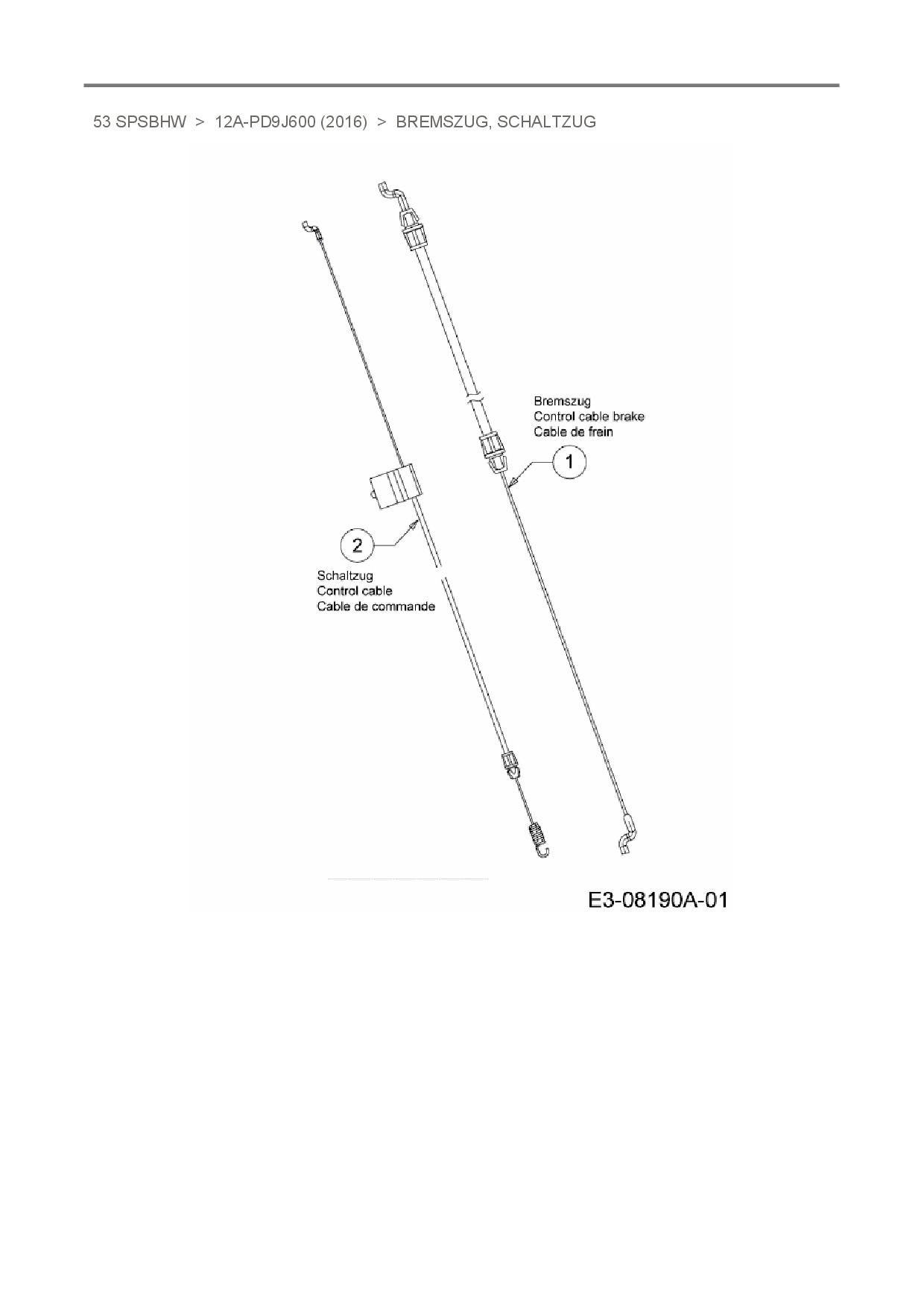 Ersatzteile für Motormäher mit Antrieb MTD 53 SPSBHW aus der Zeichnung Bremszug, Schaltzug: