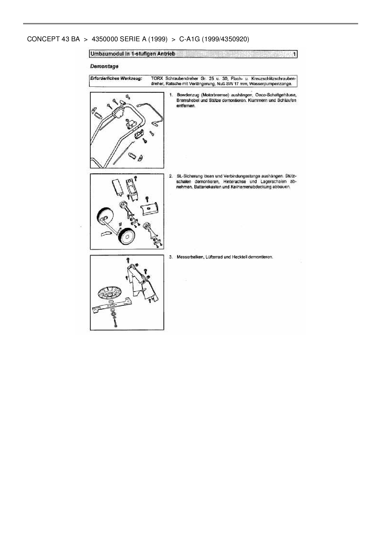 Ersatzteile für Motormäher mit Antrieb Wolf-Garten Concept 43 BA aus der Zeichnung C-A1G (1999/4350920):