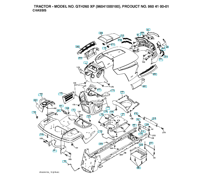 Ersatzteile für Husqvarna Gartentraktor GTH260 XP ( 96041000100, 2006-01 ) CHASSIS & GEHÄUSE: