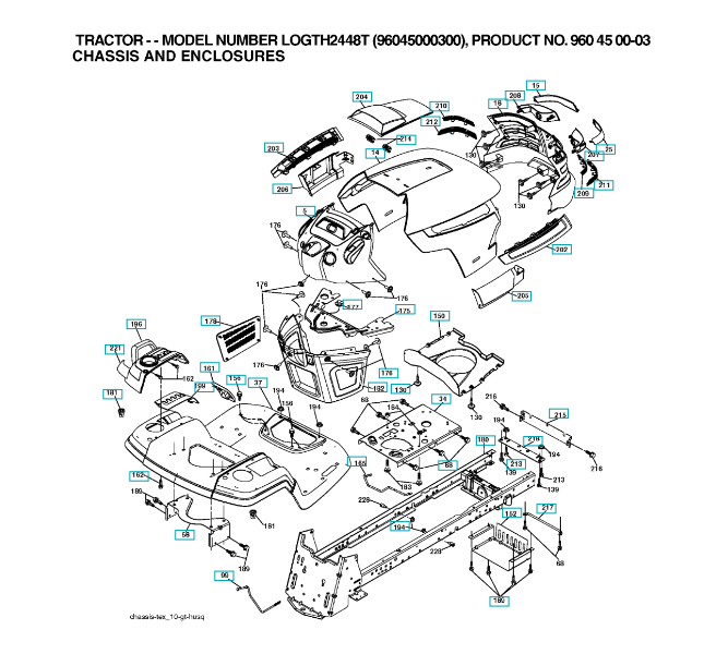 Ersatzteile für Husqvarna Gartentraktor LOGTH2448 T ( 96045000300, 2006 ) CHASSIS & GEHÄUSE: