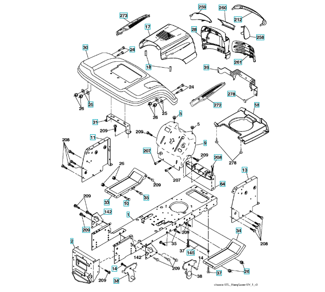 Zeichnung für Husqvarna Gartentraktor LT131 ( 96011026406, 2011-09 ) CHASSIS & GEHÄUSE