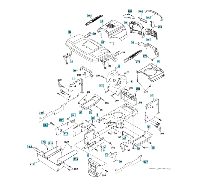 Zeichnung für Husqvarna Gartentraktor LT141 ( 96011029402, 2011-09 ) CHASSIS & GEHÄUSE