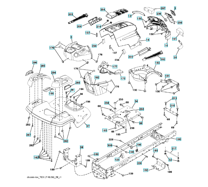 Ersatzteile für Husqvarna Gartentraktor LT1597 ( 96041005010, 2012-01 ) CHASSIS & GEHÄUSE: