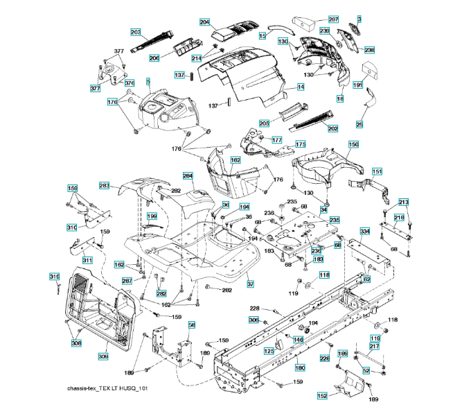 Ersatzteile für Husqvarna Gartentraktor TC130 ( 96051019400, 2019-08 ) CHASSIS & GEHÄUSE: