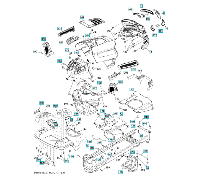 Ersatzteile für Husqvarna Gartentraktor YT46LS ( 96048010100, 2016-09 ) CHASSIS & GEHÄUSE: