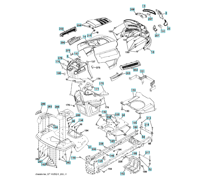 Ersatzteile für Husqvarna Gartentraktor YTH1942 ( 96043024900, 2017-08 ) CHASSIS & GEHÄUSE: