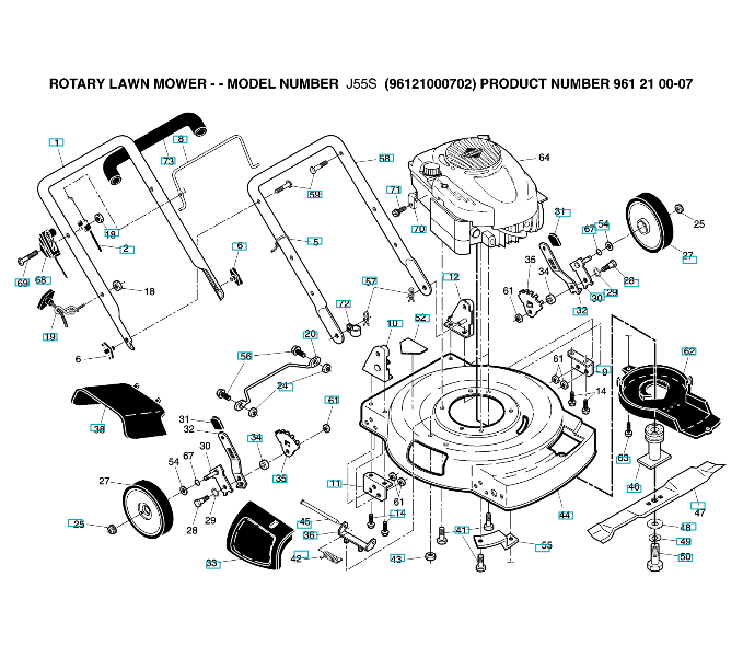 Zeichnung für Husqvarna Rasenmäher private Nutzung J55S ( 96121000702, 961210007, 2007-05 ) CHASSIS & GEHÄUSE