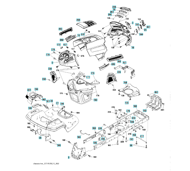 Folgende Ersatzteile für Husqvarna Gartentraktor TS354X ( 96043029600, 2018-12 ) CHASSIS / RAHMEN können Sie hier bestellen: