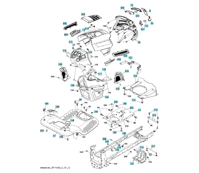 Folgende Ersatzteile für Husqvarna Gartentraktor YTH18K46 ( 96043021900, 2016-06 ) CHASSIS / RAHMEN können Sie hier bestellen: