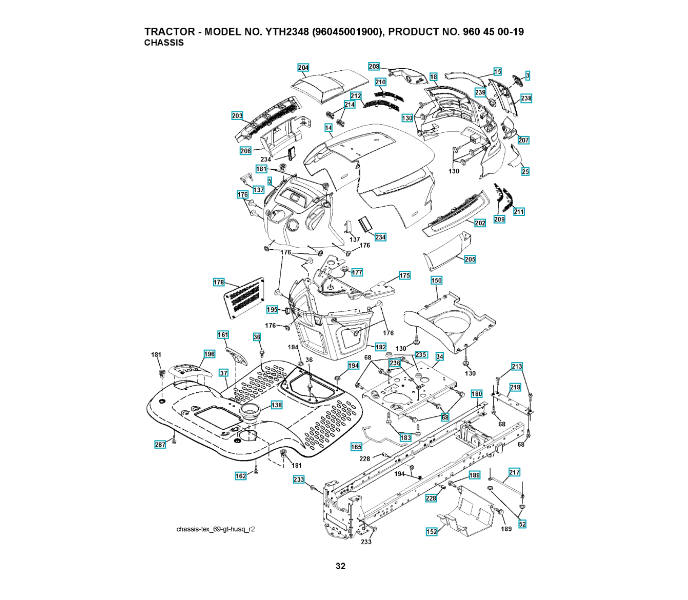 Folgende Ersatzteile für Husqvarna Gartentraktor YTH2348 ( 96045001900, 2008-12 ) CHASSIS / RAHMEN können Sie hier bestellen: