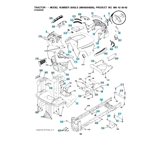 Ersatzteile für Husqvarna Gartentraktoren 2042 LS ( 96043004200, 2008-01 ) CHASSIS / RAHMEN: