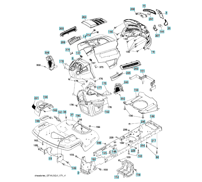 Ersatzteile für Husqvarna Gartentraktor GT52XLS ( 96043020700, 2014-10 ) CHASSIS / RAHMEN: