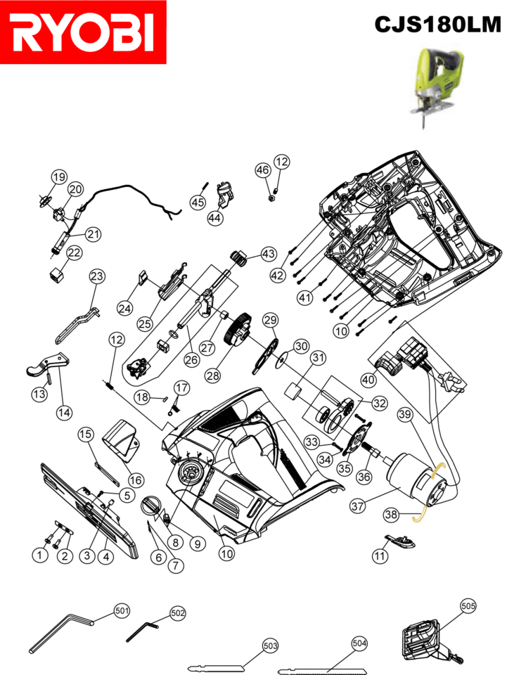 Folgende Ersatzteile für Ryobi CJS180LM - Sägen XX96 CJS180LM2 5133000137 können Sie hier bestellen: