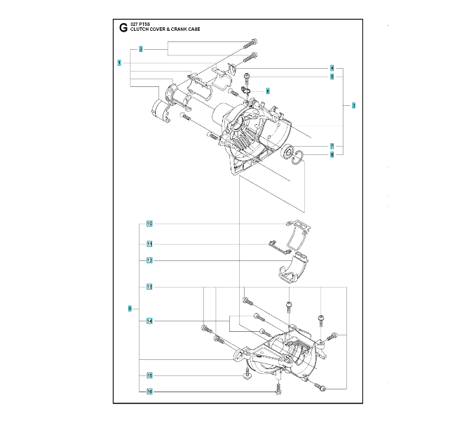 Folgende Ersatzteile für Husqvarna Hochentaster 327PT5S ( 20120100001-CURRENT ) CLUTCH COVER & CRANK CASE können Sie hier bestellen: