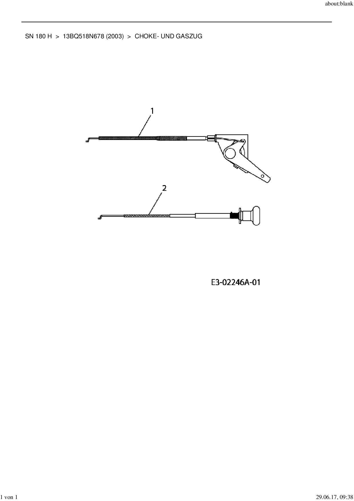 Ersatzteile für Rasentraktor MTD SN 180 H aus der Zeichnung Choke- und Gaszug:
