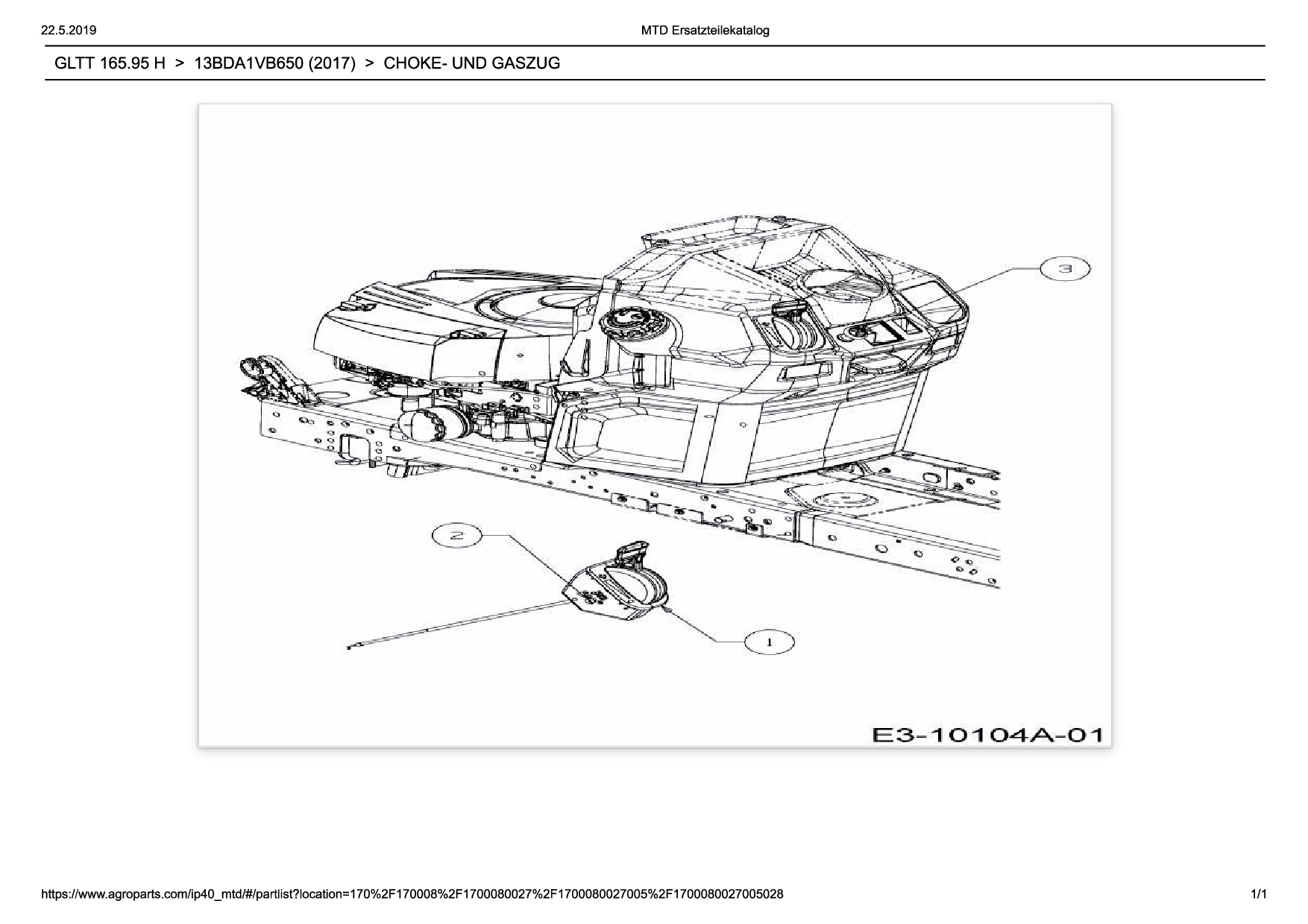 Ersatzteile für Rasentraktor Wolf-Garten Expert GLTT 165.95 H aus der Zeichnung Choke- und Gaszug:
