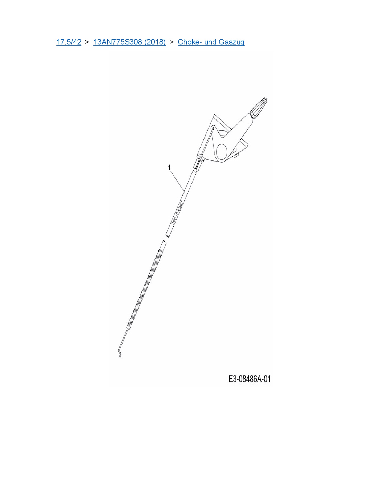 Ersatzteile für Rasentraktor MTD 17.5/42 aus der Zeichnung Choke- und Gaszug: