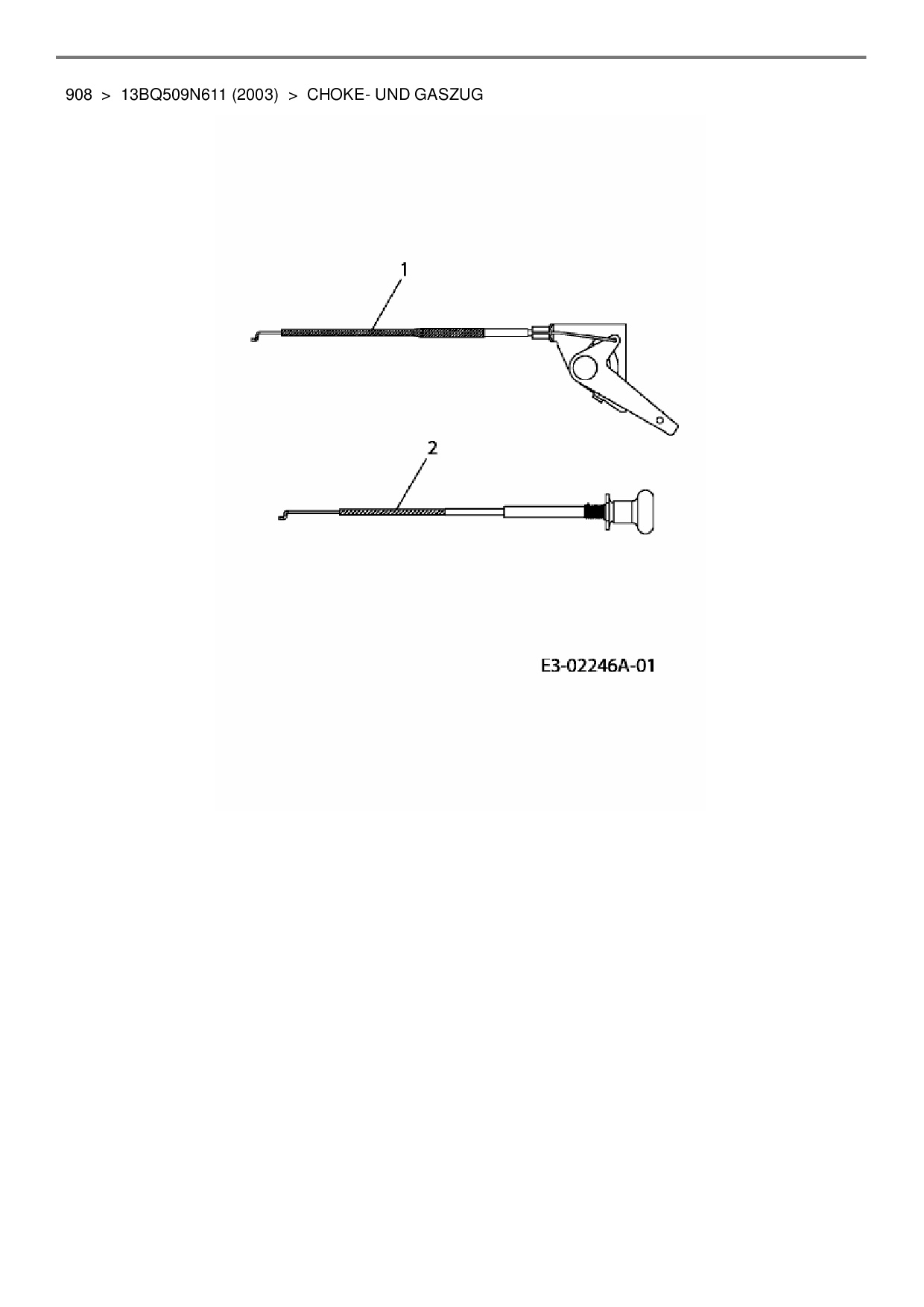 Ersatzteile für Rasentraktor Lawnflite 908 aus der Zeichnung Choke- und Gaszug:
